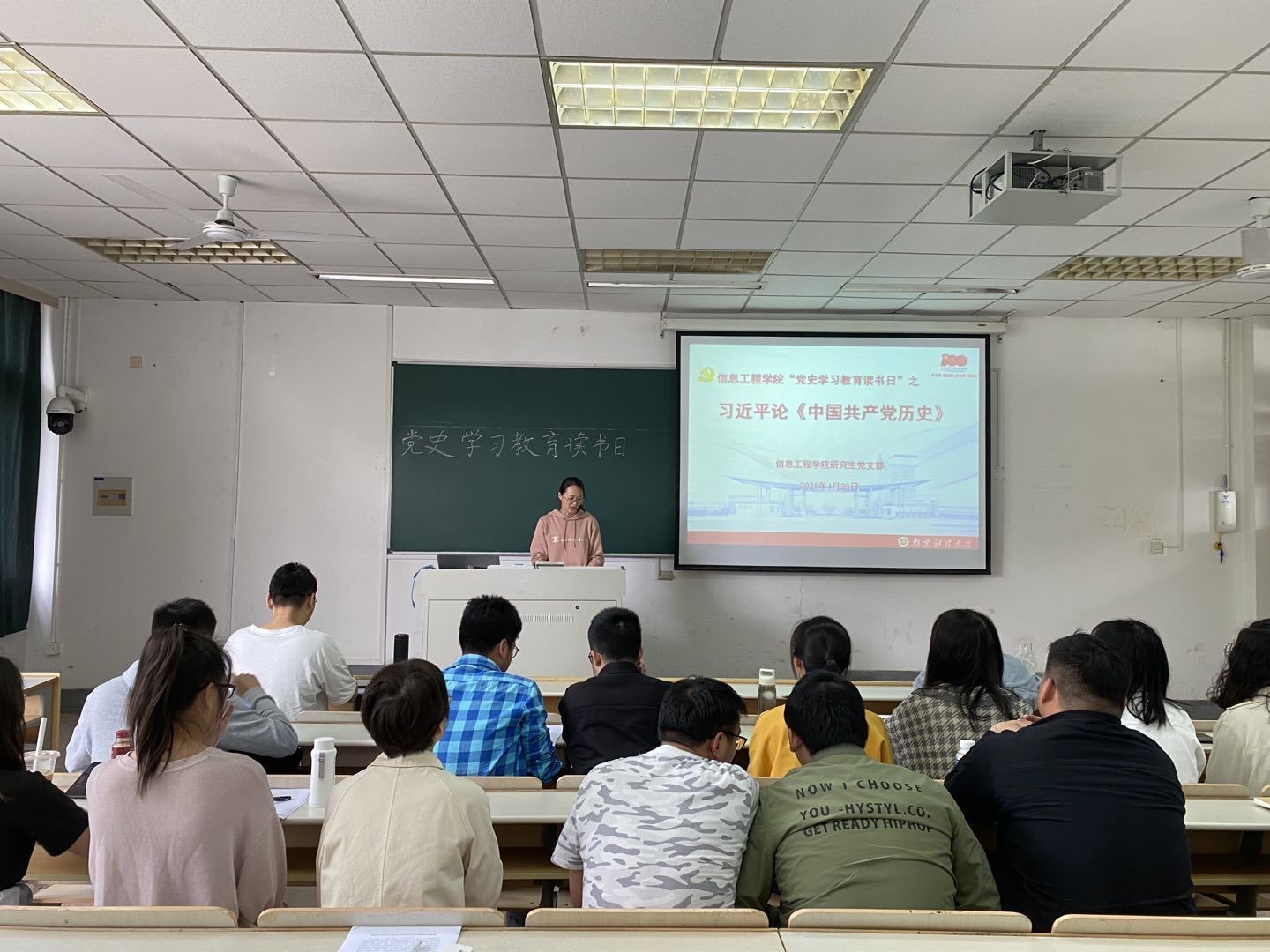 党委及下属各党支部在仙林校区相应会议室、教室等地认真开展“党史学习教育读书日”,集体学习习近平《论中国共产党历史》4个篇目,即:《实现中华民族伟大复兴是中华民族近代以来最伟大的梦想》、《学习党史、国史是坚持和发展中国特色社会主义的必修课》、《中国革命历史是最好的营养剂》和《学好党史、新中国史、改革开放史、社会主义发展》。