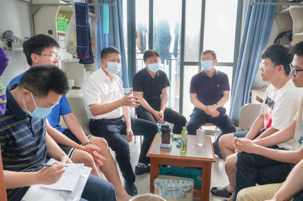 在学生宿舍,张利民书记与同学们开展面对面交流,详细了解校园封闭管理下同学们的学习、生活等方面情况以及遇到的困难,认真听取同学们对于专业学习、科学研究、体育锻炼、校园管理、服务保障等方面的诉求和建议,并观看了同学们关于粮食产后损失数据集成管理系统的阶段性科研成果展示。