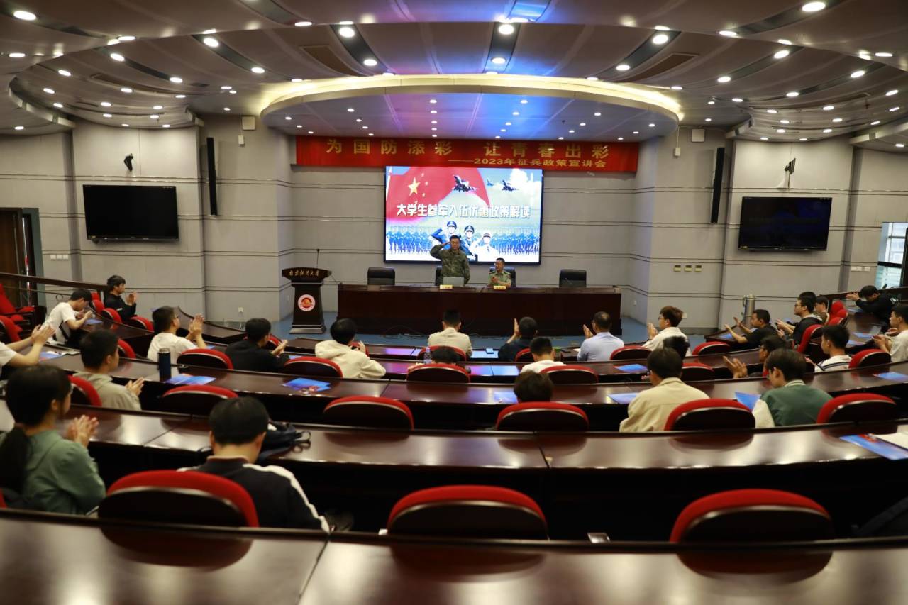 在行政楼二楼报告厅组织开展“为国防添彩·为青春出彩”2023年征兵政策宣讲活动。鼓楼区人武部副部长葛洪海、彩票论坛
