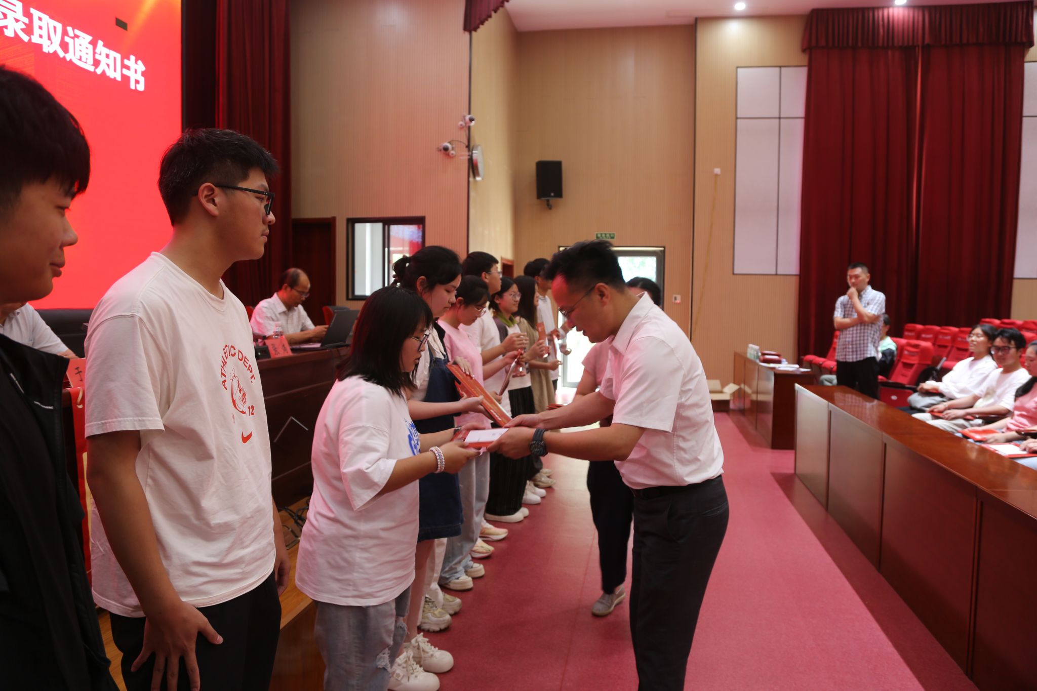 张炳副校长为同学们颁发录取通知书