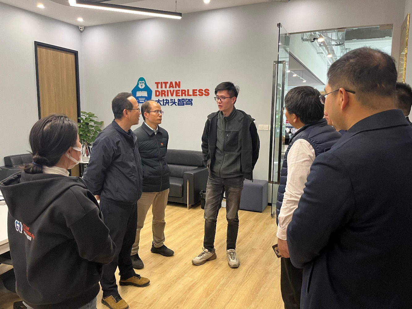 领导一行在赵元岭副部长带领下参观了新加坡·南京生态科技岛展厅并前往南京大块头科技有限公司、江苏未来都市出行科技集团有限公司、南京土星信息科技有限公司开展访企拓岗促就业行动。在南京大块头科技有限公司,公司负责人李华芹详细介绍了公司聚焦港口散货码头、矿山、干线物流等特定场景重载运输的自动驾驶系统研发情况;在江苏未来都市出行科技集团有限公司,李红云总经理带领彩票论坛