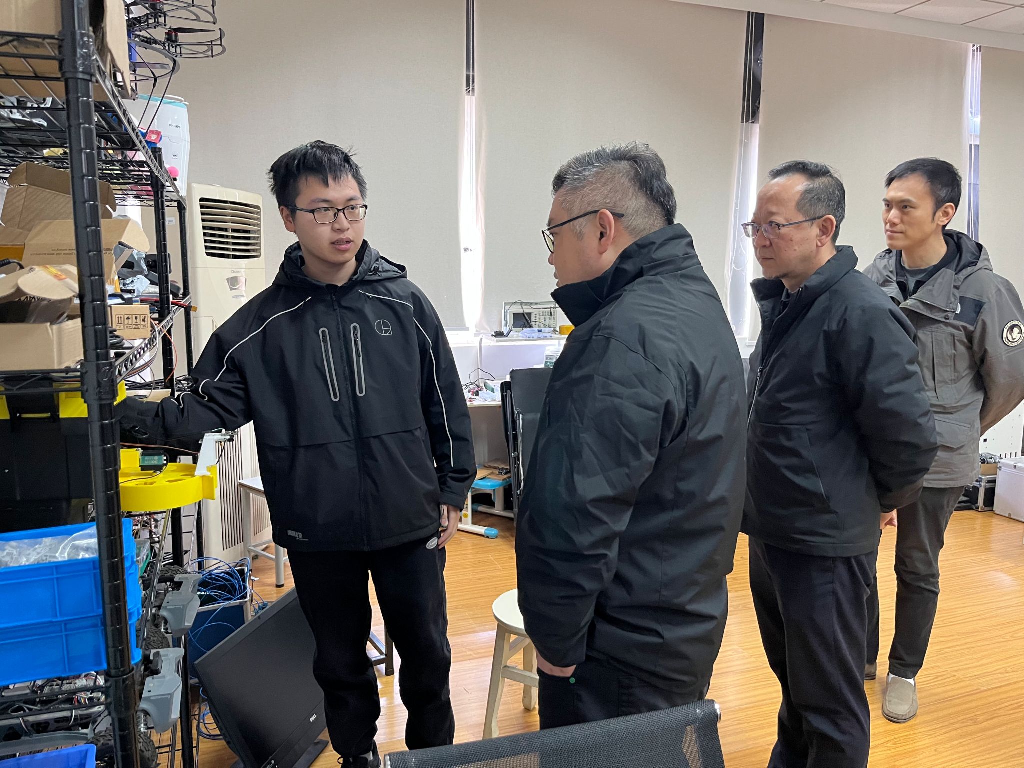 领导陪同下参观了机器人实验室。实验室团队成员、2023级学生郑旭洋向到访嘉宾详细介绍了实验室的研究方向与最新成果。杨卓副总裁对实验室的创新实践成果给予高度评价。