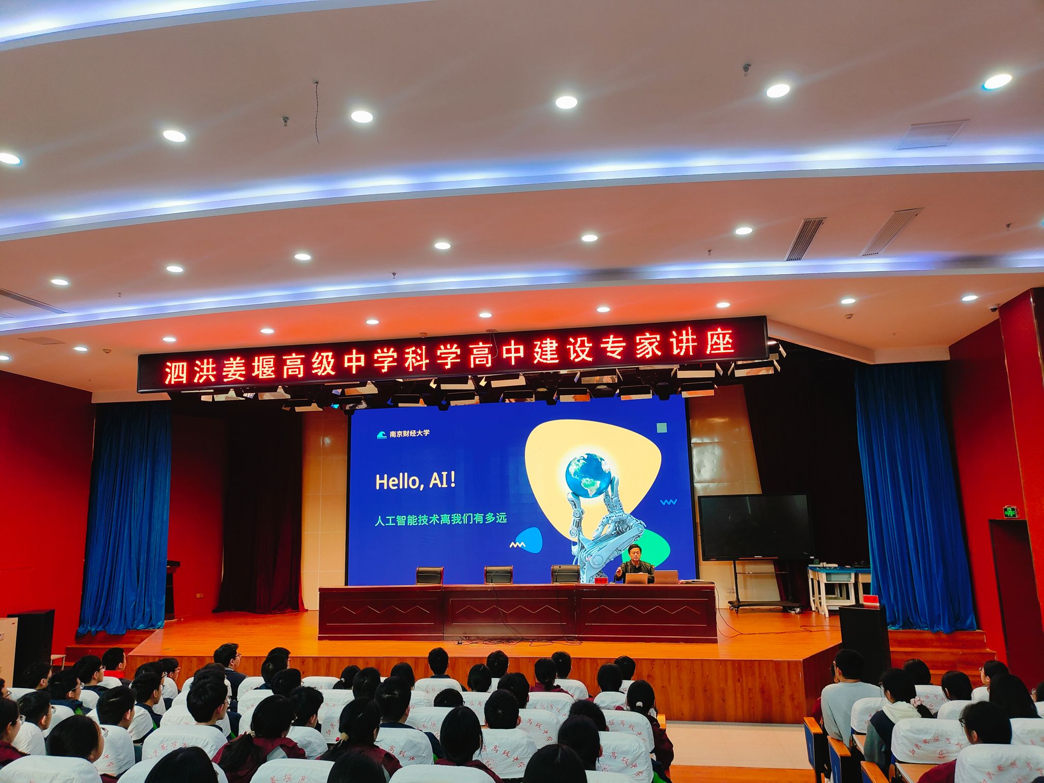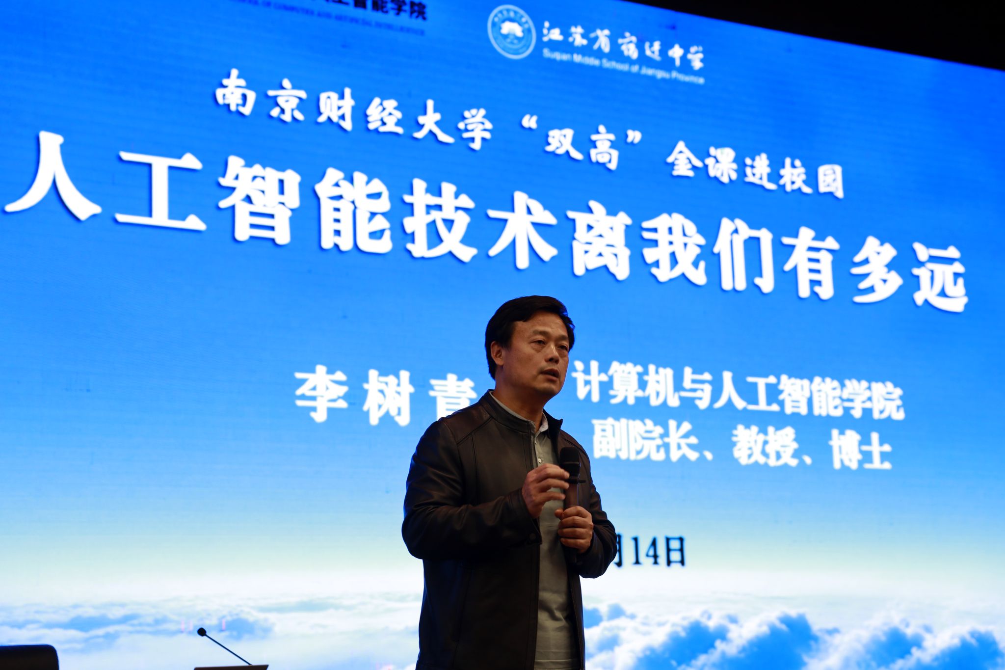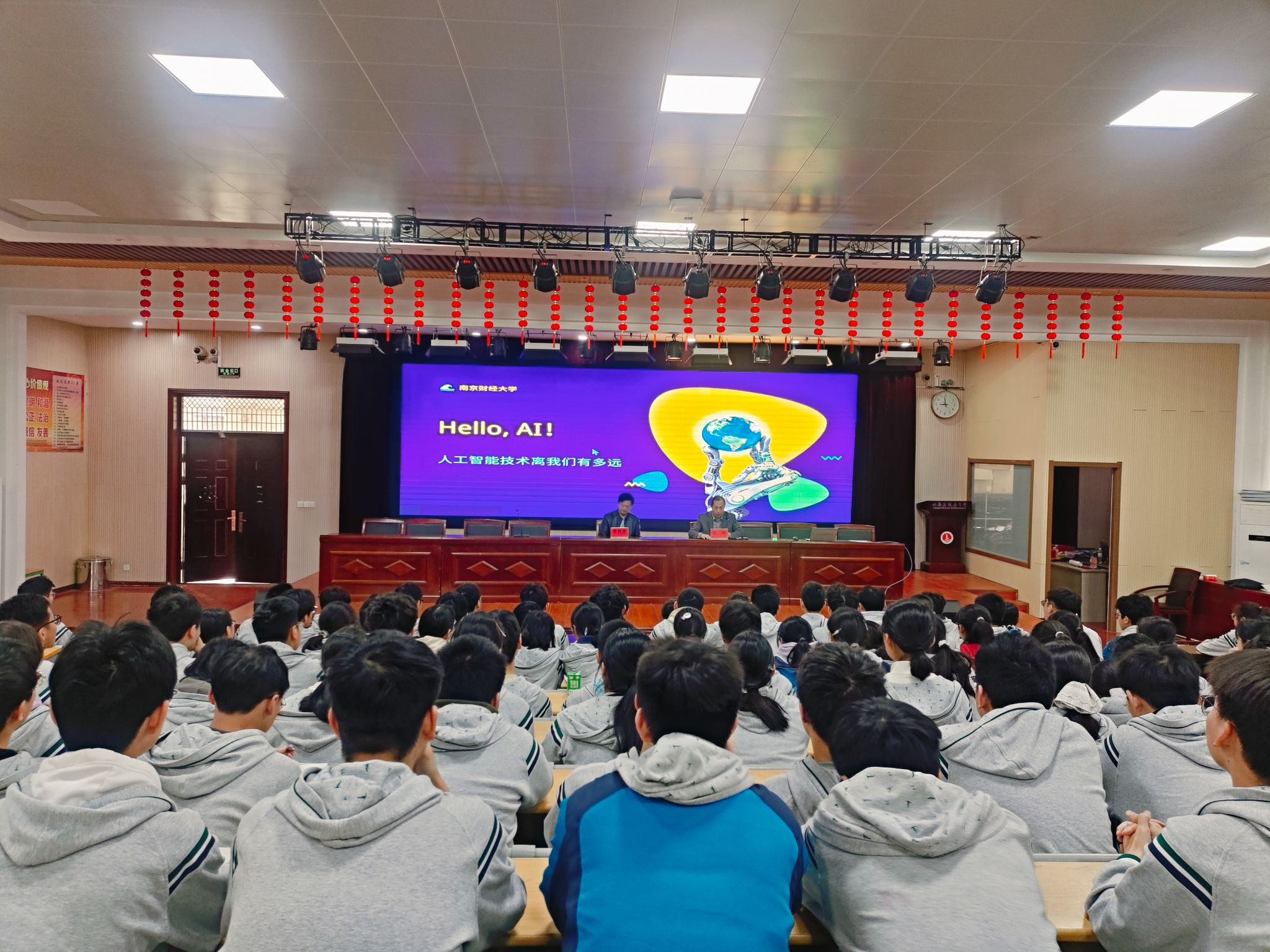 有了更全面、更深入的了解。随后,李树青副院长带来题为《人工智能技术离我们有多远》的“双高”金课讲座。讲座以“什么是AI”为切入点,用贴近中学生生活的生动案例,通俗拆解大语言模型、推荐系统等前沿AI技术,带领同学们一步步揭开人工智能的神秘面纱。现场氛围热烈活跃,同学们认真聆听、积极思考,提问环节中踊跃举手、主动交流,与大学老师面对面探讨AI相关疑问,在互动中深化对AI技术的认知,真切感受到人工智能与日常生活的紧密关联,进一步激发了对科技探索的兴趣。