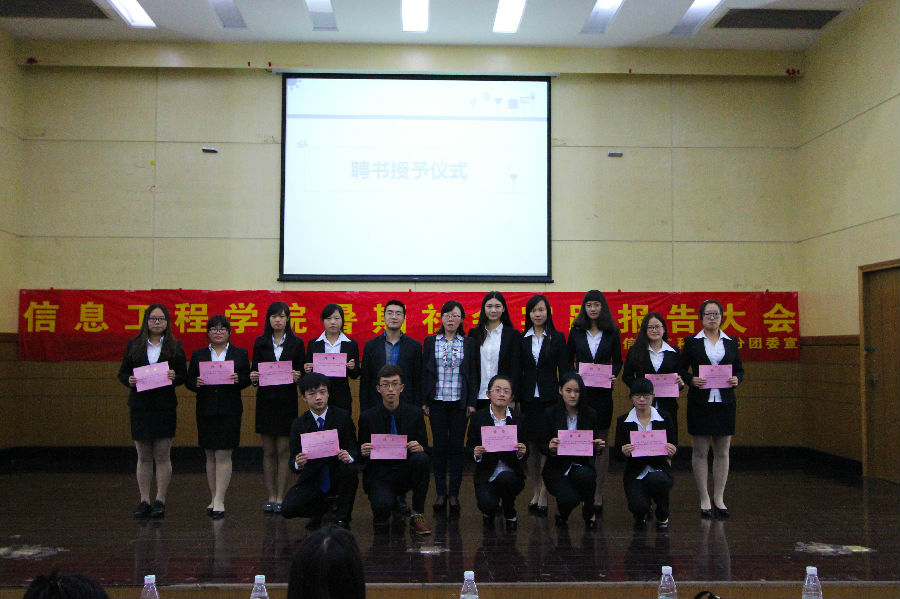 2015年10月13日晚上,信息工程彩票论坛 在仙林校区管理学科楼报告厅举办院第十三届学生会、分团委成立大会,院党委副书记潘雪峰、分团委书记张媛媛等老师出席此次大会。