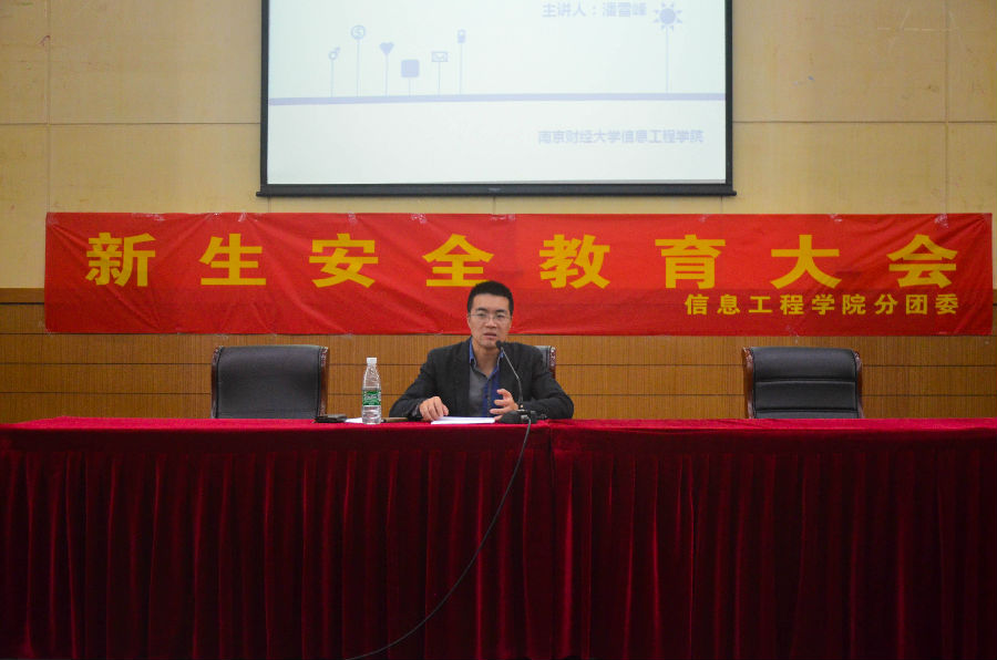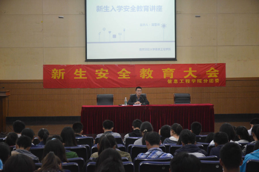 2015年10月13日晚上,信息工程彩票论坛 在仙林校区管理学科楼报告厅为2015级新生举办安全教育知识讲座,由院党委副书记潘雪峰老师主讲。