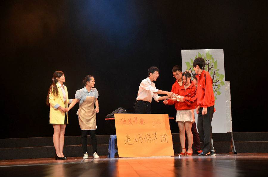 此次大赛中,彩票论坛 演出的原创话剧作品《回头》给人留下深刻印象。《回头》演绎的是生活中的一幕小细节,表现了一个贫困家庭母亲的坚强,一个贫寒学子由无知成长为孝顺懂事的心酸历程。该剧由彩票论坛 2013级、2014级同学独立完成,感人的剧情以及演员们的深情演出令评委赞叹不已。