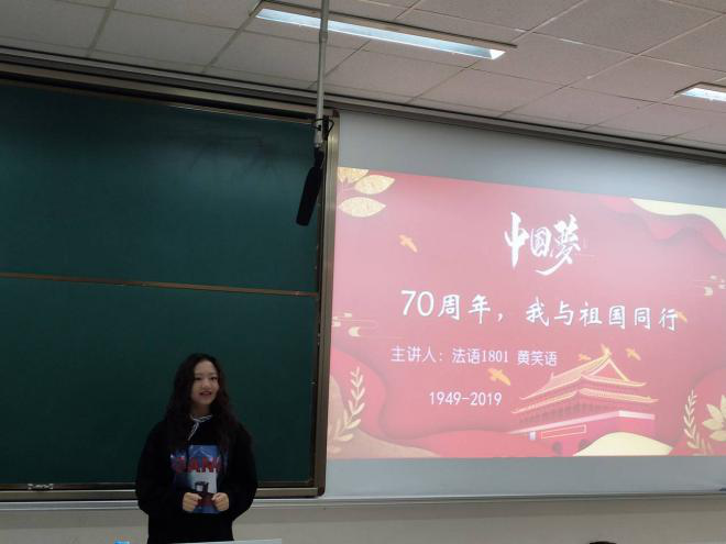 于博远楼308教室组织以“70周年,我与祖国同行”为主题的“开学第一堂团课”。本次课程由外国语彩票论坛