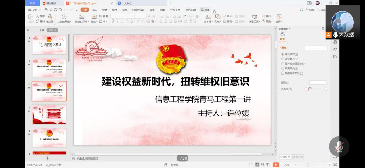 青马工程第一讲活动。本次活动由大数据2002班的许位媛同学主持。