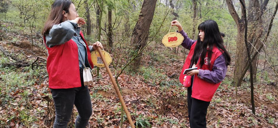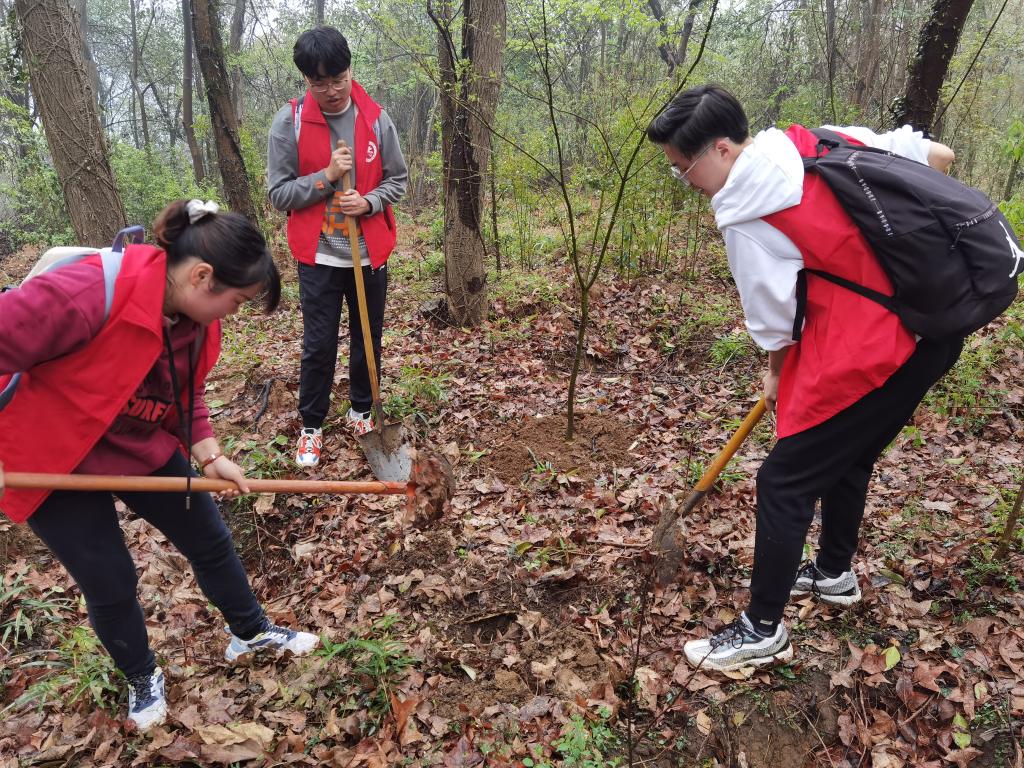 (学生在栖霞山植树)