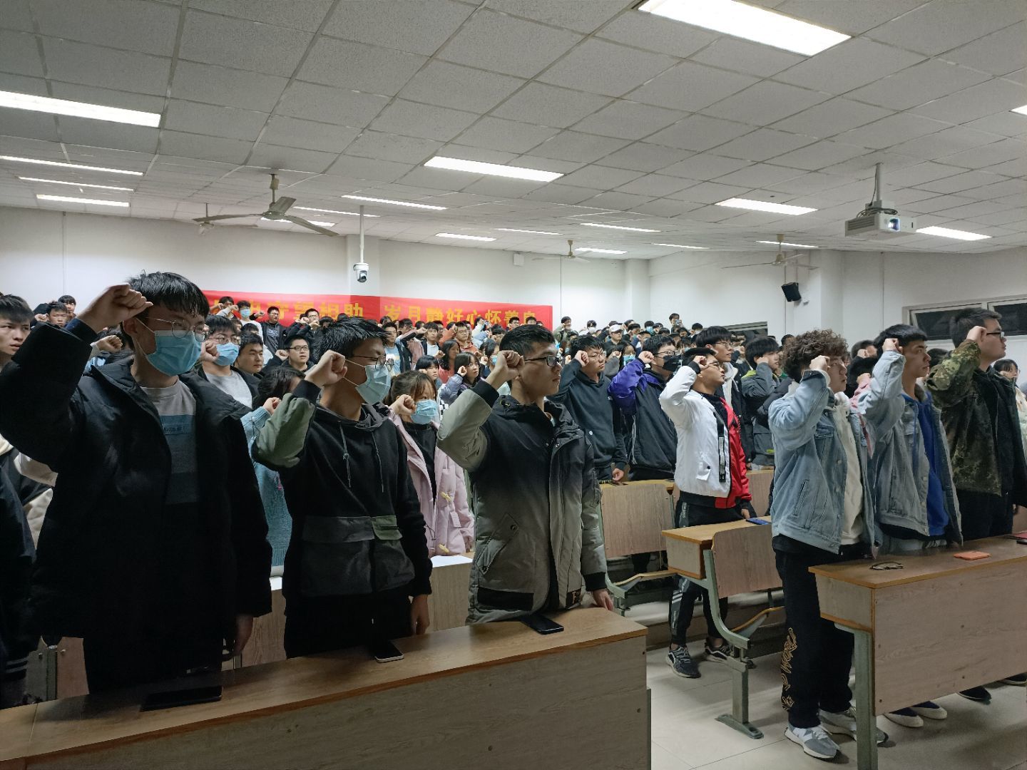 首先,物联网2101班徐苏阳同学带领同学们回顾了历史史实,了解了日军的暴行。然后,同学们一起观看影片,通过视觉来近距离地接触那段历史。活动末尾,由大数据2101班的许硕同学带领大家宣读《和平宣言》,同学们纷纷举起右拳齐声宣读“二零二一,国家公祭……继往开来,永志不忘!”,相信这段宣言必然会铭记于每一位青年学生的心底。