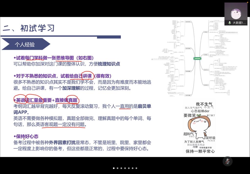 本次经验分享指导会为同学们梳理了考研就业形势,调动了考研与就业的动力,帮助同学们更好地备战考研、认清就业,为同学们后续开展考研学习备考和积极择业就业奠定了基础。