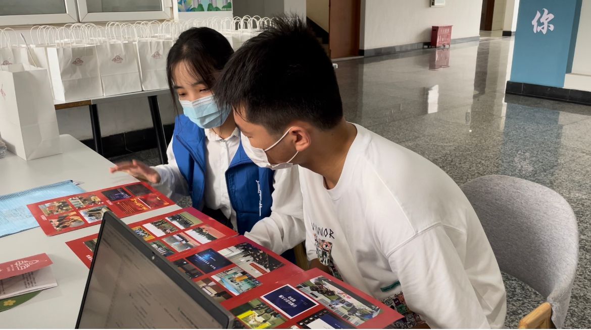 迎新站台处打卡留念;志愿者还结合宣传图册向他们介绍了彩票论坛