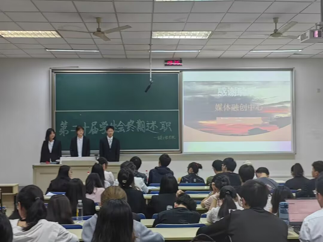 会议伊始,主席团代表朱仪桉进行学生会工作汇报,回顾本学期举办的活动,点明了学生会工作中出现的问题并提出建议。此后,各中心负责人分别就其工作展开述职。