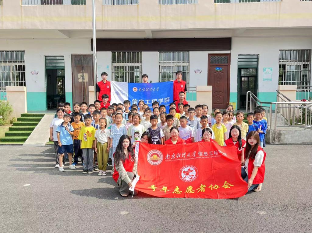 出征仪式结束后志愿者与孩子们拍摄了一张大合照,照片中小朋友们脸上充满喜悦,对大哥哥大姐姐的到来感到高兴,也对接下来的暑期学习生活充满了期待,志愿者也热情地与孩子们交流互动。