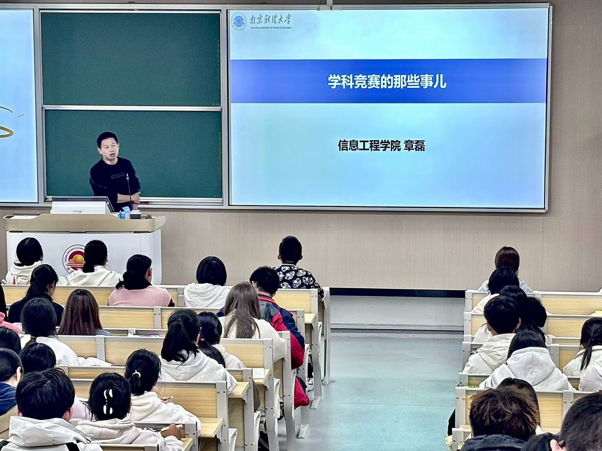 在博观楼202室开展“探索竞赛之路,铸就创新辉煌”学科竞赛专题讲座。讲座由e路领航辅导员工作室主办,信息工程彩票论坛