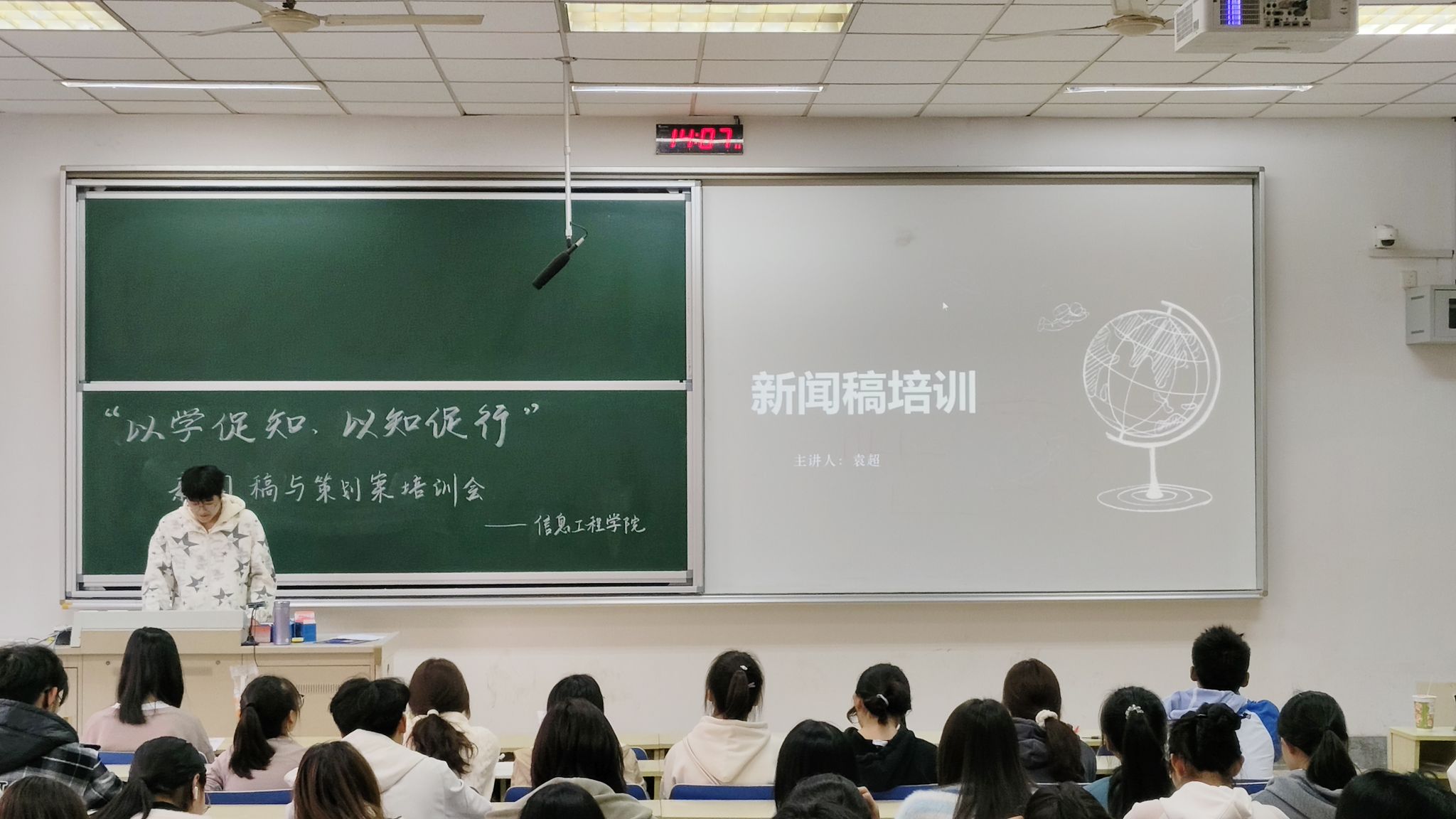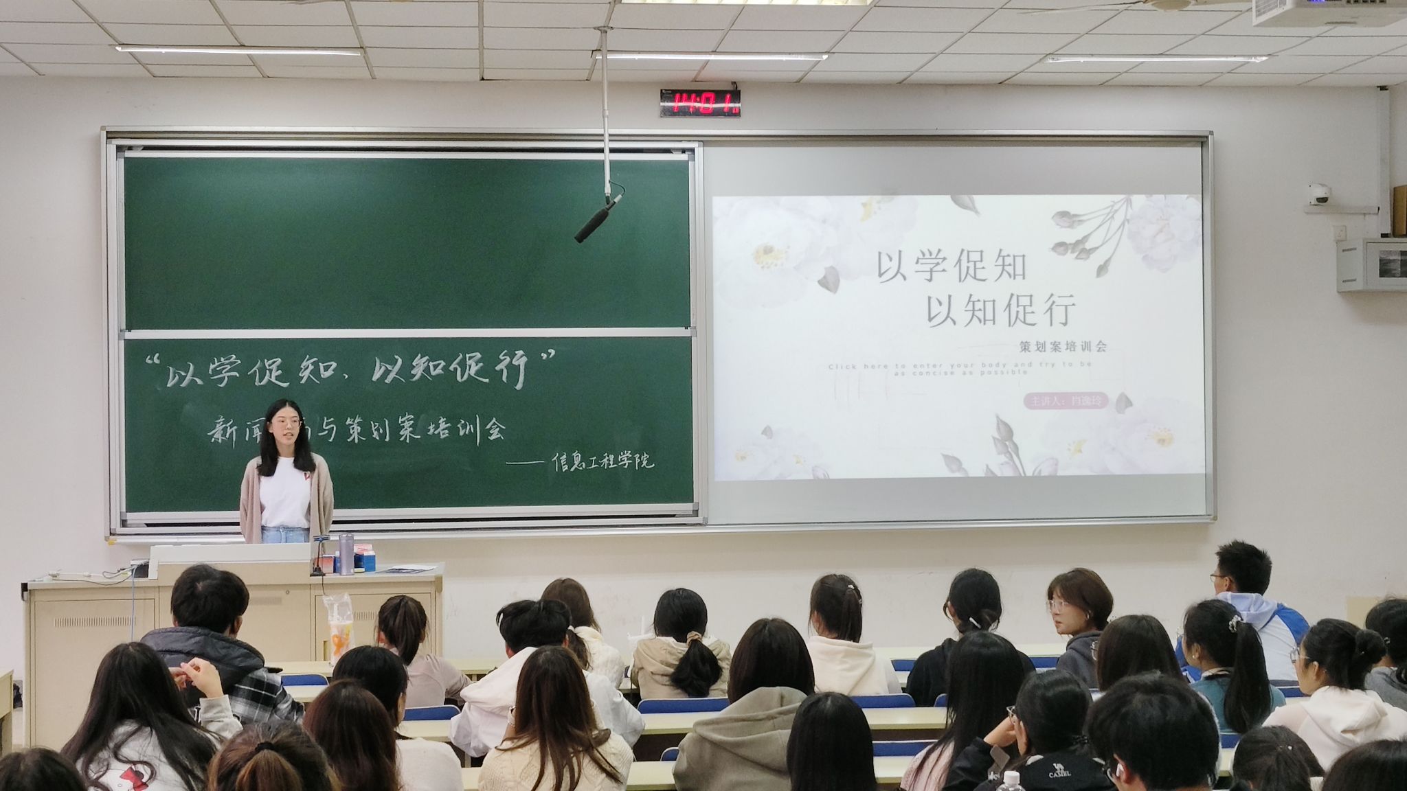 于10月27日在专四111教室举办了以“以学促知,以知促行”为主题的新闻稿与策划案培训会。