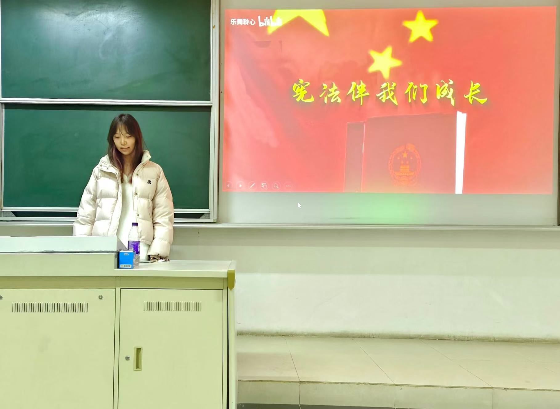 活动伊始,主持人杨乐陶通过对国家宪法日、宪法以及党的十八大以来的成就让同学们初步了解了宪法及其影响。接着,同学们观看了一段青少年普法网的视频并齐唱《宪法伴我行》,增强了学习宪法的意识。