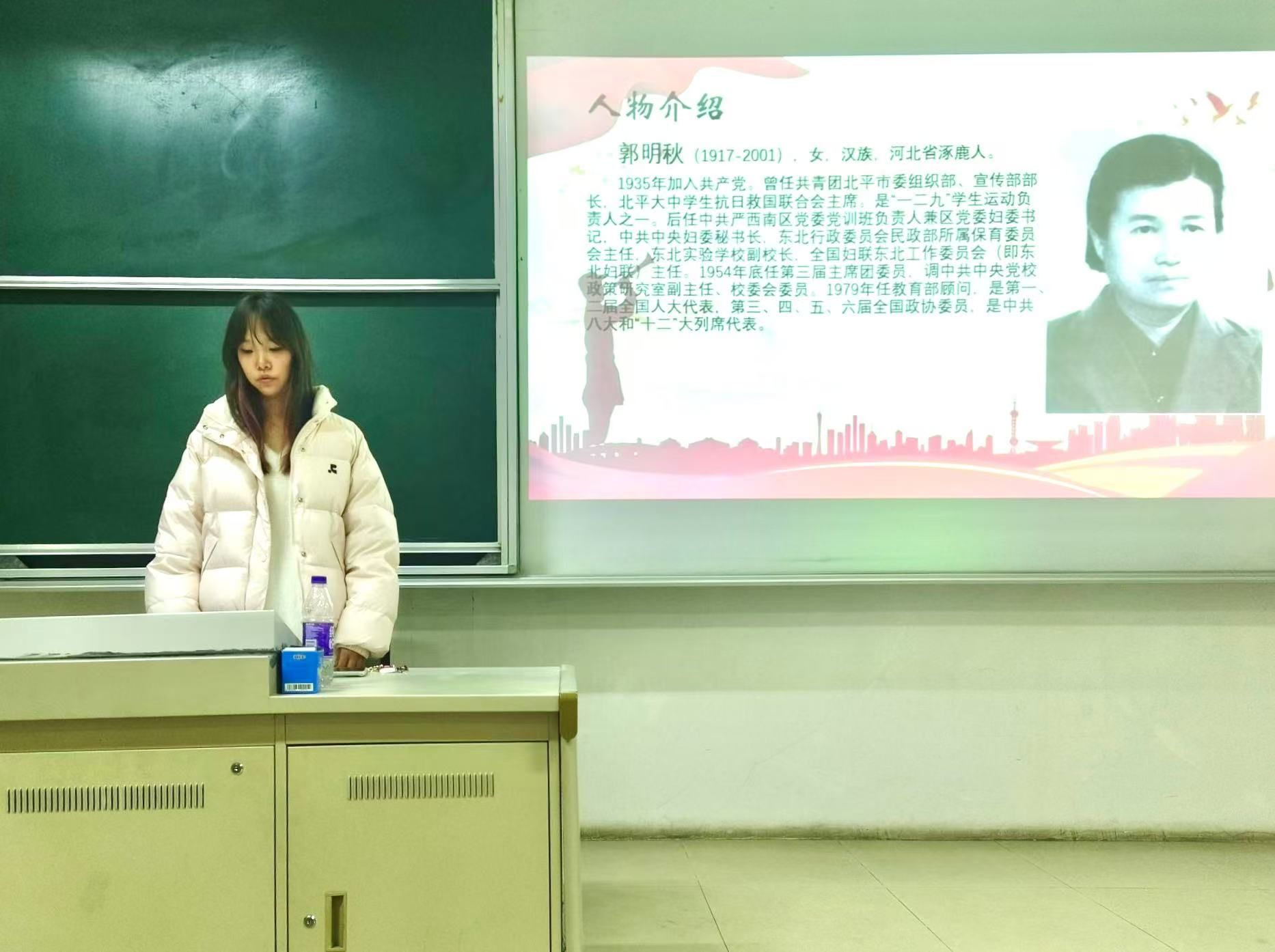 接下来,主持人带领大家回顾学习了“一二•九”运动的历史和相关伟大人物,体会到了先辈们为解放中国抛头颅洒热血的努力,也更加深刻地明白了祖国如今盛景的来之不易。