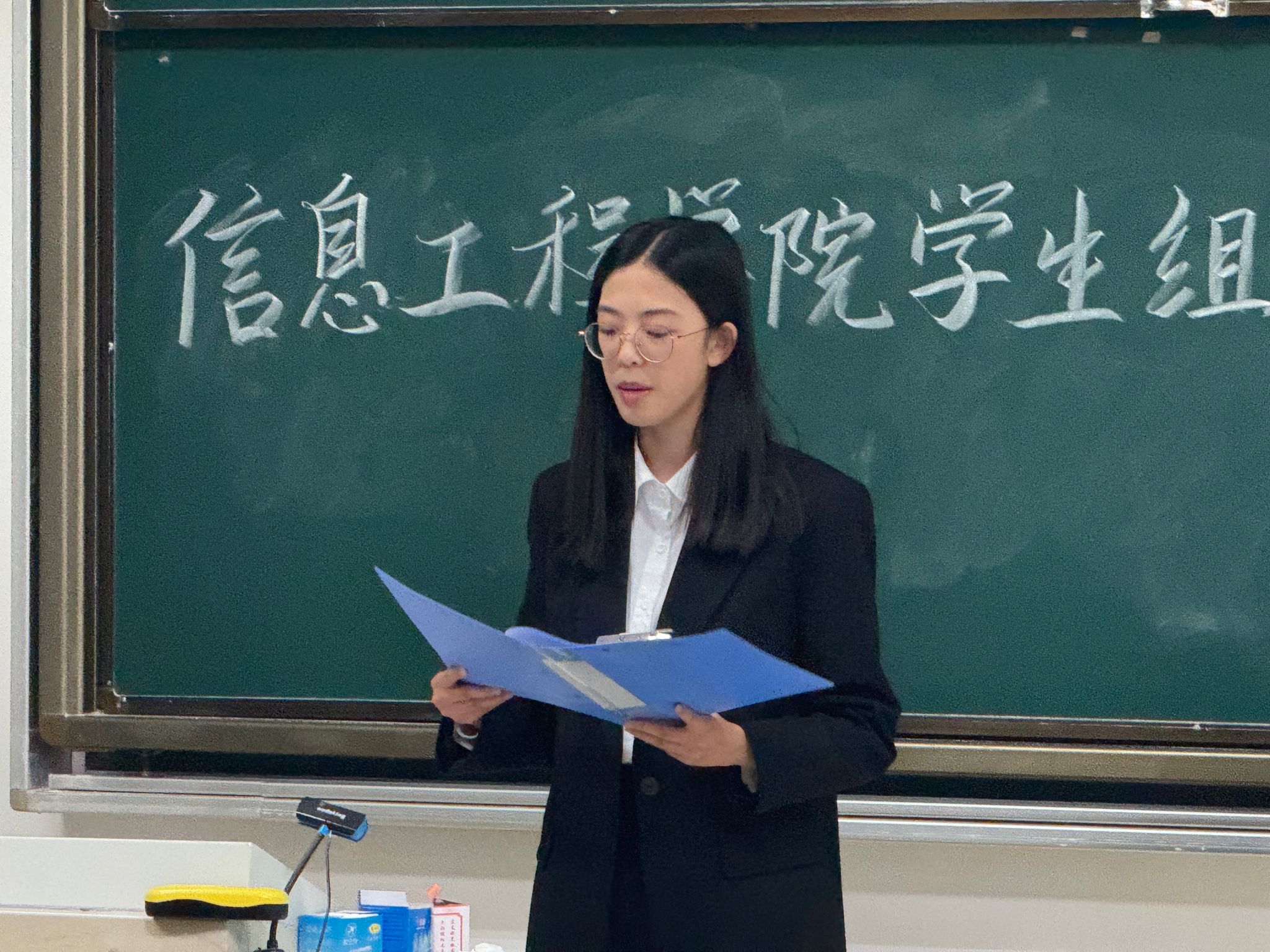 学生会主席陈钱颖、信工院学生会主席肖逸玲、信工院学生会主席邵晨晨、信工院学生会主席韦欣茹、信工院团委副书记(学生)李晓寒、信工院团委副书记(学生)袁超、各班级代表及分团委、学生会全体成员参加会议。