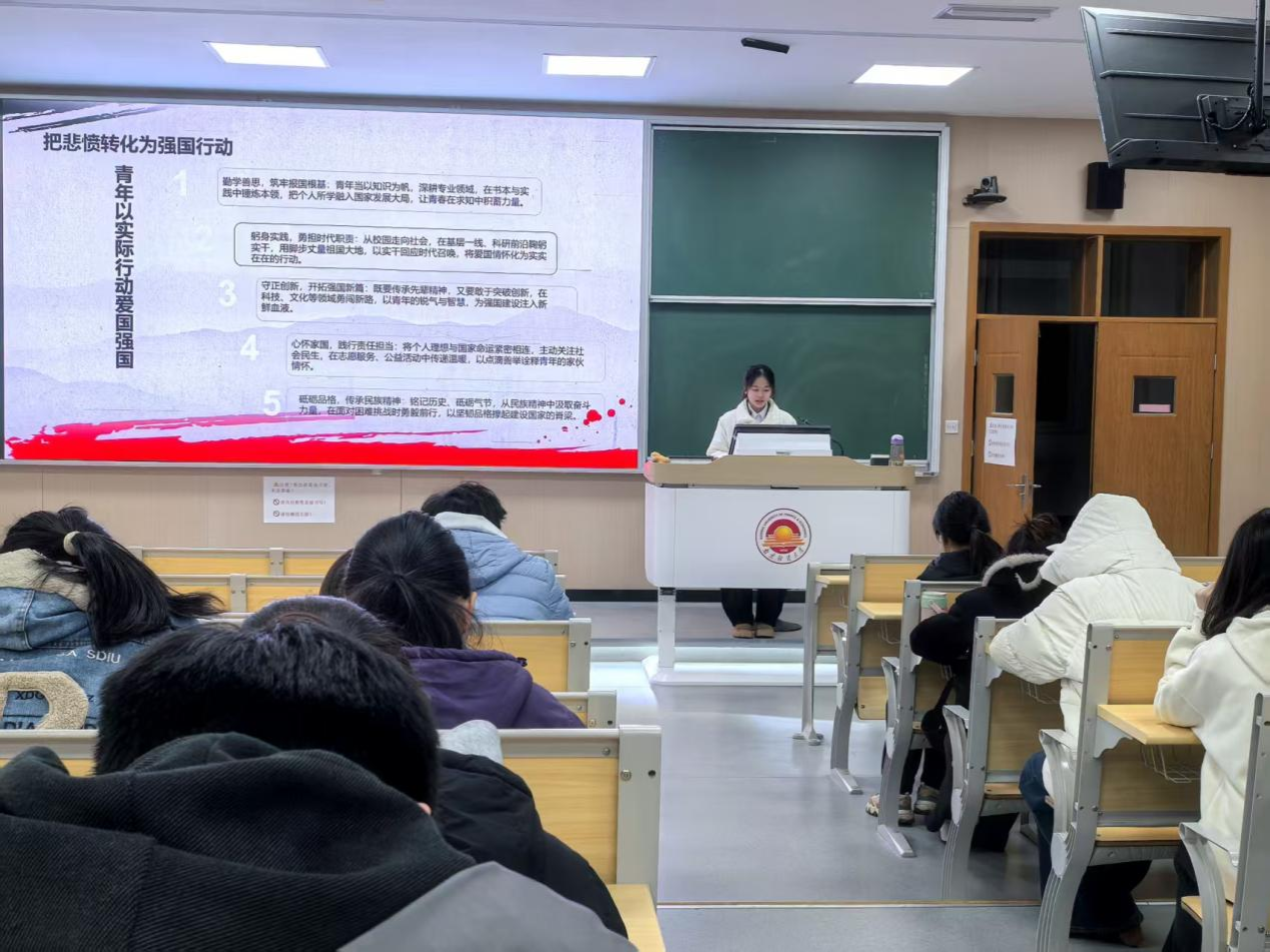 随后,当主讲人阐述“把悲愤转化为强国行动”这一部分时,系统阐释了从“勤学善思”到“砥砺品格”的五条行动路径。讲解中,主持人紧密联系在座同学的计算机与人工智能专业背景,强调将技术学习视为筑牢报国根基,鼓励在科研实践中勇闯新路,并指出铭记历史的最终目的是塑造担当民族复兴重任的坚韧品格。这段阐述对同学们而言,完成了一次深刻的价值引导与行动启迪。不仅将历史激发的悲愤情感进行了理性升华,更重要的是,为青年学子——尤其是身处科技前沿的学子——指明了清晰具体的报国方向:爱国强国并非抽象概念,它就落脚于扎实的专业学习、勇敢的创新实践和自觉的社会服务之中,激励大家将历史的回响,切实转化为驱动自身成长与贡献国家的内在动力。