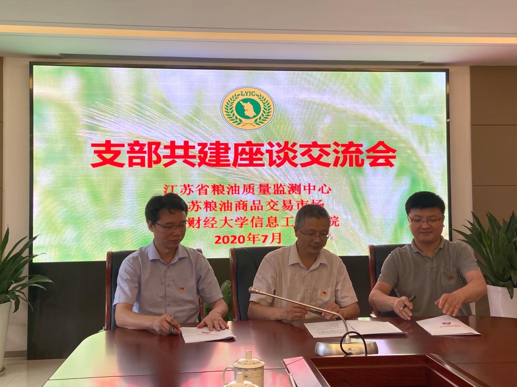 交流会后,信息工程彩票论坛 院长、电子商务实验室党支部书记曹杰与江苏粮油质量监测中心支部书记黄熙荣、江苏粮油商品交易市场支部书记高巍现场签订了“党建共建”协议。此次活动以“校企合作,支部共建”为载体,充分发挥党员在校企合作中的作用,对推动政产学研一体化具有重要意义。