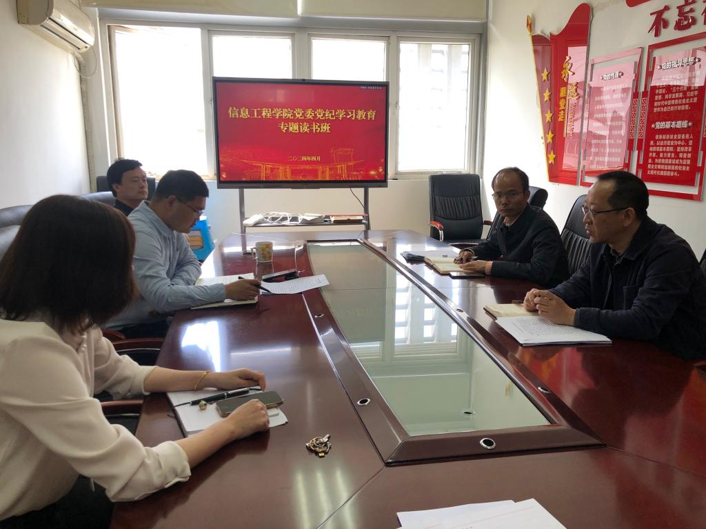 在德业楼412会议室召开院党委领导班子党纪学习教育专题读书班集中研讨暨党委理论学习中心组学习会议,深入学习习近平总书记关于党的建设的重要思想,集中学习新修订的《中国共产党纪律处分条例》。院党委书记张阳军主持学习会。全体班子成员参加学习会,张阳军书记、马健副书记作重点交流发言。