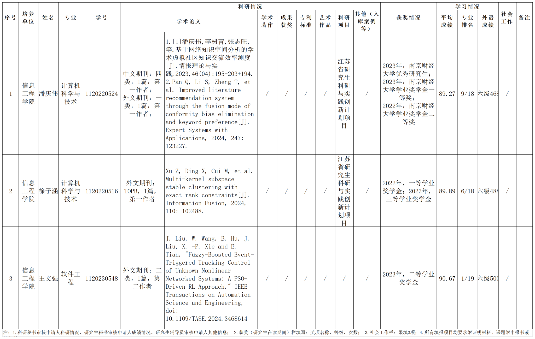关于信息工程彩票论坛 2024年研究生国家奖学金(第二批)拟推荐名单的公示